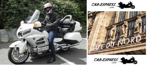 Une Moto avec chauffeur vous attendra à la Gare du Nord devant le restaurant HIPPOPOTAMUS.